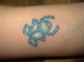 I have to admit that I am more than a little bit confused.If you are filming a movie, why are you actually tattooing the images instead of using make-up? And the image that you sent me is not a bee, it’s a scarab. So I am thinking that if you would like to make something permanent on your actor’s bodies you might want to do a little bit more research on it.And lastly, if for some reason you actually would like to do this and are serious – we could tattoo all 18 people in one day. It’s not a big deal.Much curious,TeeJay
