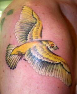 Here is the photo that I took of the yellow bird. It finishes up the open cage tattoo that I posted on February 4th.