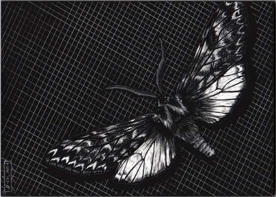 Nocturnal Catch – scratchboard – 5×7 – 2007 – Published in the Scratch Art book – $200