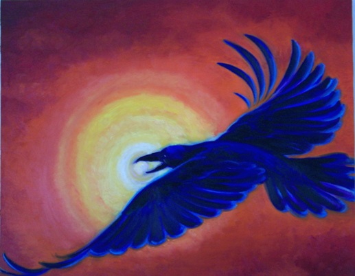 Raven Returns – 2007 – water soluble oils on canvas 16×20 – not framed, should be – $175