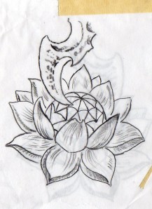 When I arrived (after the usual greeting and visiting stuff) we started to look through the sketches. Don had some new reference as well – one photo of a lotus and one of a lotus made up of crystals. With these new ideas we went back and forth – talked and sketched (OK, mostly Don sketched and I visited). This is what we came up with