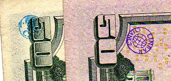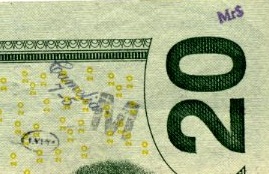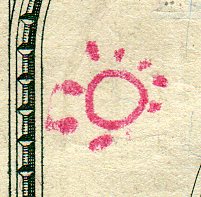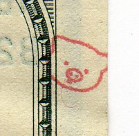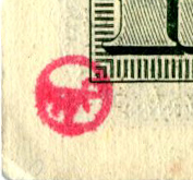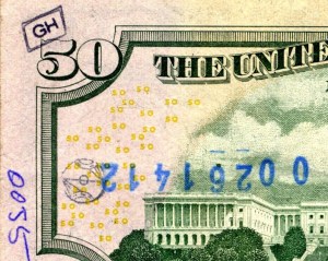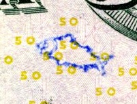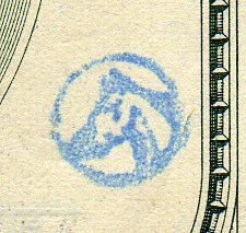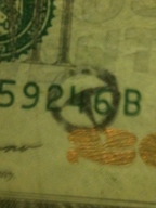25. Unfortunately I didn’t get a picture, because I saw it as I was handing it over and couldn’t ask for it back, but I saw something today on a fifty. In the same place as the little red star in the next-to-last picture, I saw the number one, inside a triangle, inside a circle. There may have been more I didn’t see.