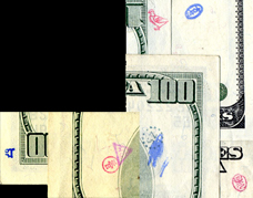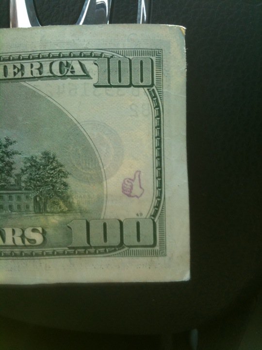 7. Just got some 100$ bills yesterday and i just happen to be counting them and saw on 3 of them that they were stamped each one with a different mark. I would like to scan them and post them on here will some one tell me how to post the images.