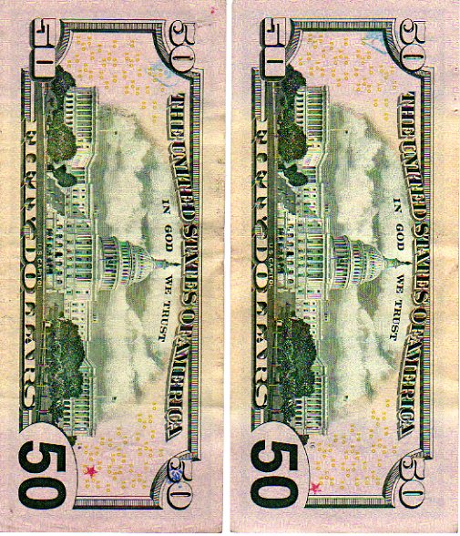 and today (August 30th, 2010) : a very well marked $50 a fish (on the other end of the same $50) : and another duplicate. Personally I think this makes the foreign currency exchange mark less believable…. but as I have said before that may just be me.