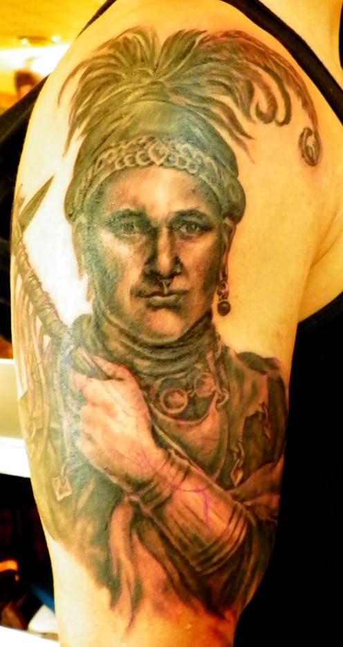 Allie (who is also a tattooist) is a direct descendent of Chief Cornplanter and I am directly descended from Joseph Brant – wonder what the ancestors would have thought of this.