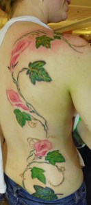 After Sam and I said our goodbyes and she went off to check out the rest of the show – I sat down with Jessica (not my Jess, another one). Jessica had one small tattoo on her hip that she wanted to cover up. We drew this on her and started up. About three hours into it she told me that she needed a break. When she didn’t return for an hour and a half I thought for sure that she was done and there was no way that we were going to finish…. but Jessica amazed me! She not only came back and sat down, she let me finish the rest of the tattoo with not so much as a whimper. Way to go Jessica!!!