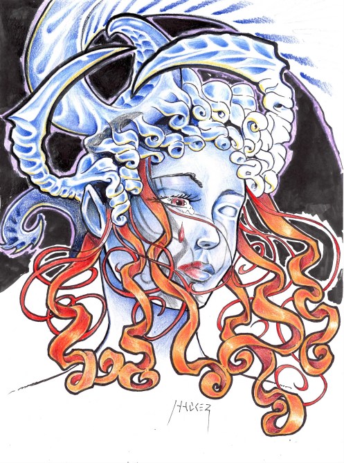 A couple of weeks ago some of us were looking at one of Starr’s paintings – she showed us the reference photo that had inspired the piece. Both Damon and I thought that the reference photo was cool – but had said that we would have taken it in completely different directions.