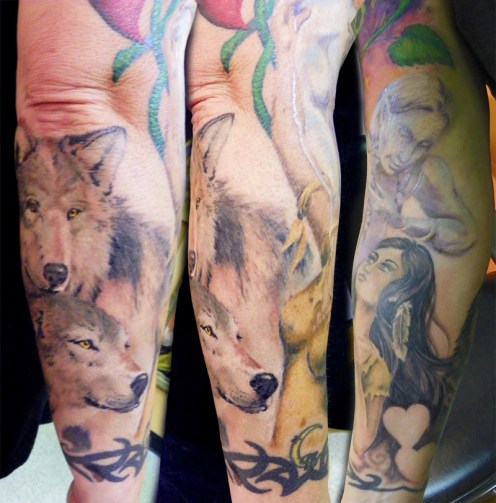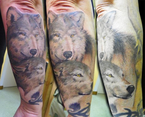 Mary also selected another pair of wolves that we would be able to see well enough to work from and they were added on the back of the forearm on a subsequent sit.