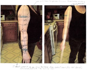 Mary sent me photos of her arm and all the measurements that I would need in order to map out the design for her arm. (In addition to returning the original sketch and my modification overlay.)