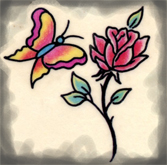The flash images above are off of the JD Crowe “Tattoo Brand” tattoo flash copyright 1989. I was unable to locate the butterfly image that is referenced in the last story – which was also off of the Crowe flash sheet from around the same era.