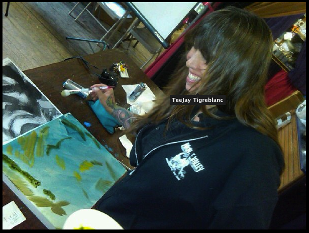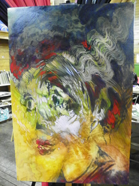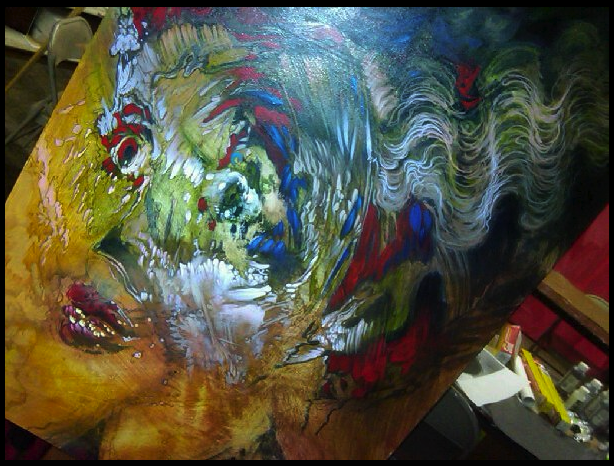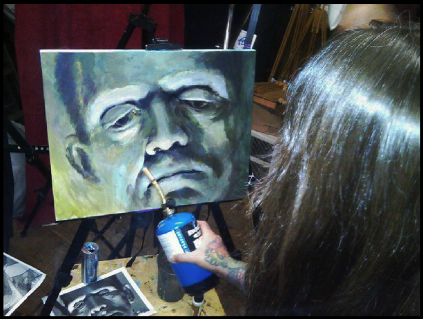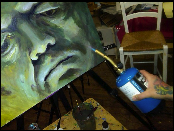 and yes, those last two photos are of me using a blowtorch on my painting. I told you we were trying new things.