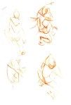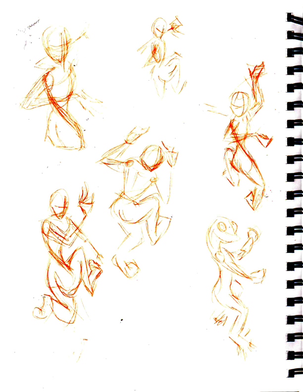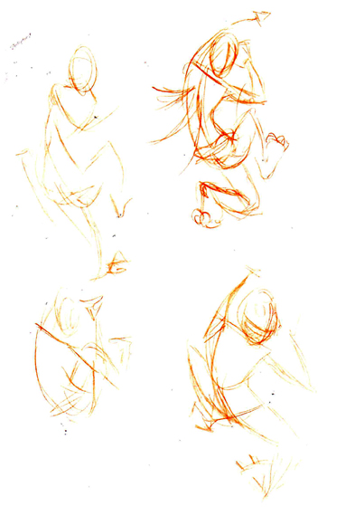 I spent quite a few days torturing myself with this image. Just in one sketchbook (there were others on random pieces of paper) there were these trying to work out the positioning: