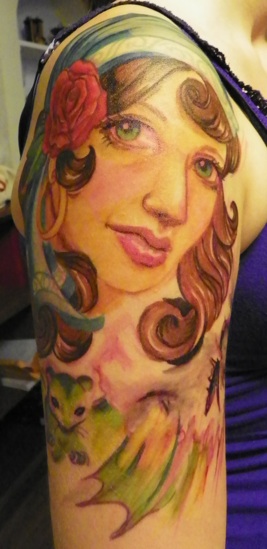 A group that I am involved in has been posting step by step tutorials. One of the members had put together a nice one on how she works with traditional tattoo watercolors. It was informative and looked like fun so it inspired me to take yet another bash at watercolors.
