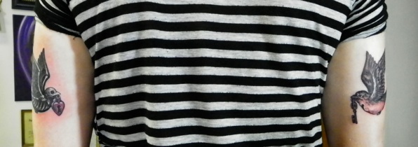 After Sarah, Korrine had these two sparrows put on the back of her arms: