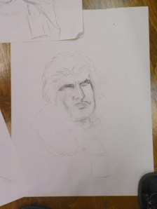 2. Holly, I definitely wouldn’t have been able to work on this drawing with you there. I picked this head because he does NOT look like your classic style bust. He has a freaky mustache and looks kind of like a bad 70s porn guy. I think that there would have been way too much giggling going on to get anything done.