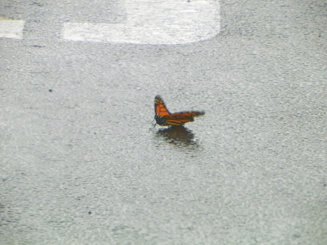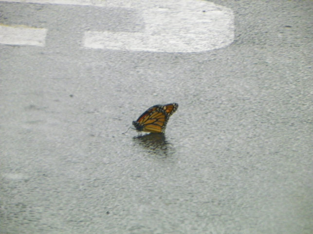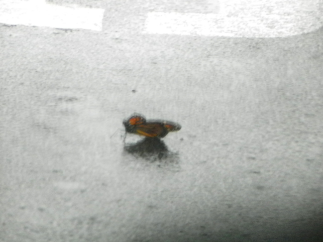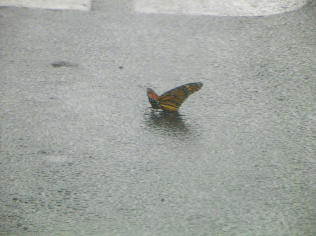 Also today I saw this very drenched monarch trying to get out of the pouring rain. I was afraid to assist for fear I would damage it’s wings. So I just waited to make sure that it made it to safety.