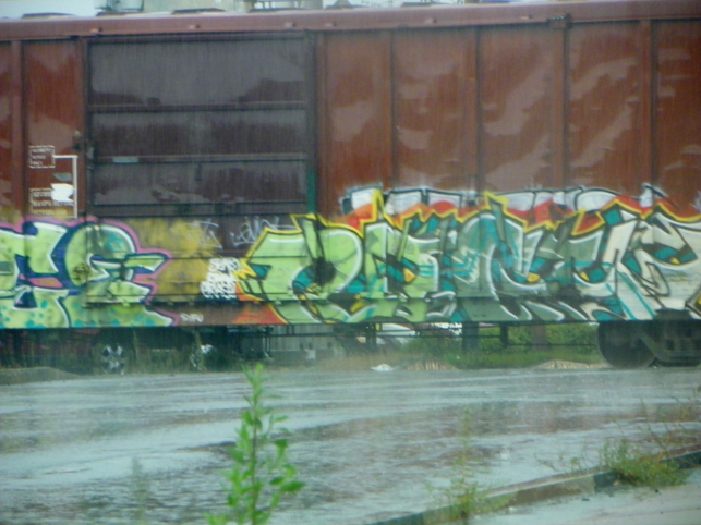 On the way back from art class I got “stuck” waiting for the train and took some photos of some of the graffiti as it went by.