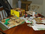 Teigan also assisted me in making the tags with my name and contact info for each piece.