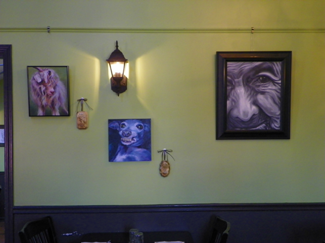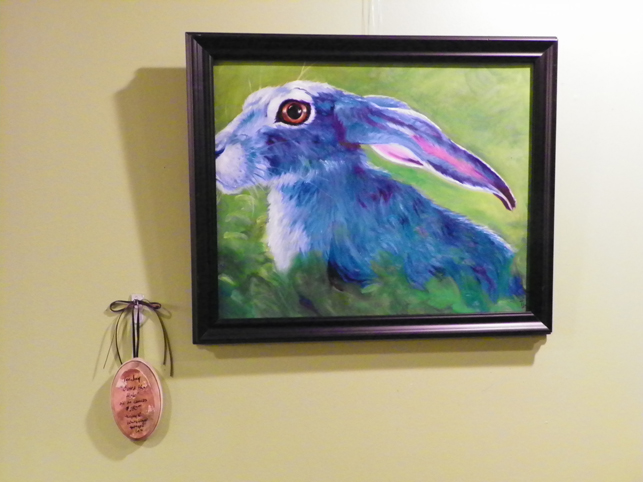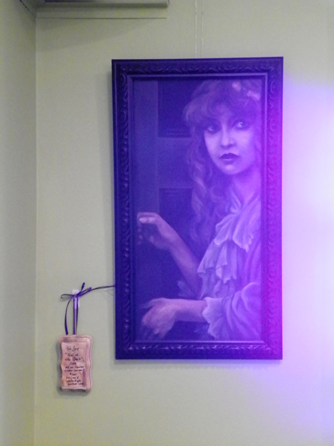 I had 9 pieces originally that I wanted to use and then at what I thought was the last minute added a couple more “just in case”. When I got to the Owl House on Monday with my paintings and my tags – I realized there was way more room than I thought upstairs (of course it never occurred to me to go and look ahead of time). I had been in the Owl House many times, just never upstairs. I had heard that it was “really small” upstairs and so I figured that it was smaller than downstairs.