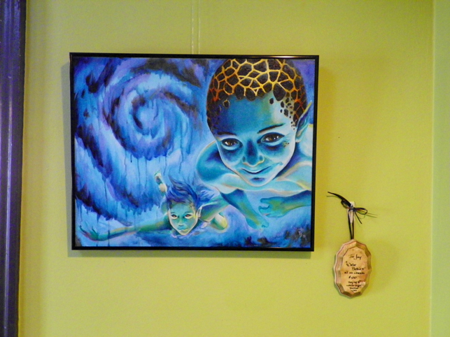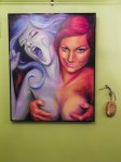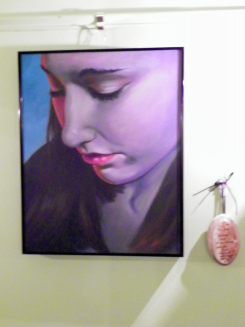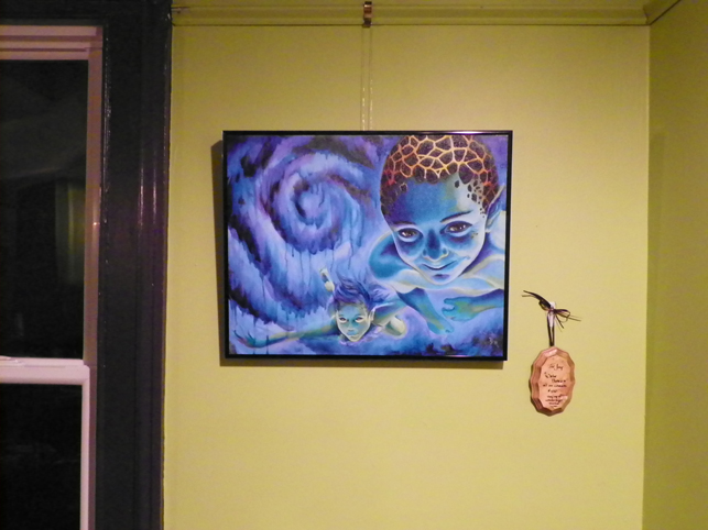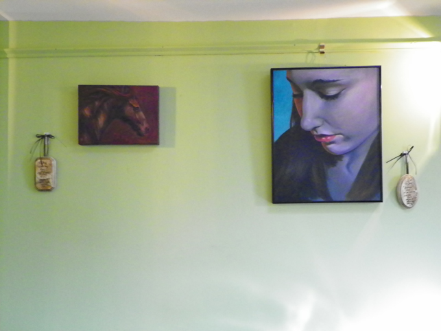 So began a flurry of running around to the house and the shops to grab some extra paintings and then home to make additional tags. While Sara nicely and calmly hung her and Josh’s pieces. It worked out quite well as I didn’t really have the time to fully panic.
