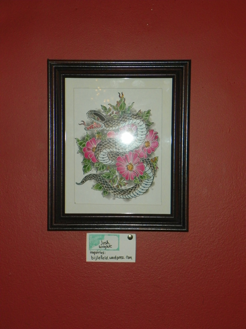 Fortunately for me and my fears of public and social functions I hadn’t realized until really late in the game that there was even going to be an opening when Sara and Josh asked me if I wanted to hang some stuff with them.