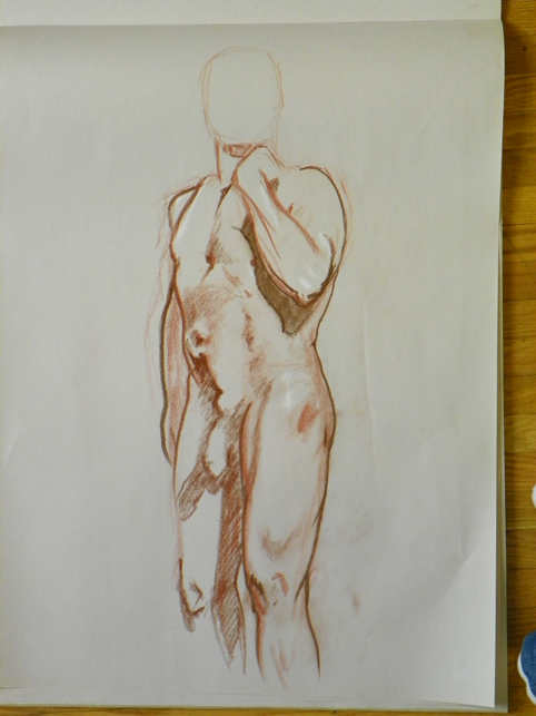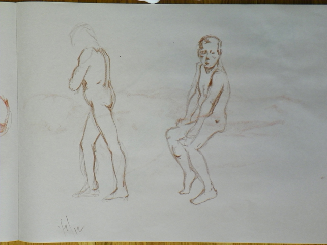 and the sketches from figure drawing class. I arrived late this week and missed the gesture sketches at the beginning (I really don’t like being late anywhere… )