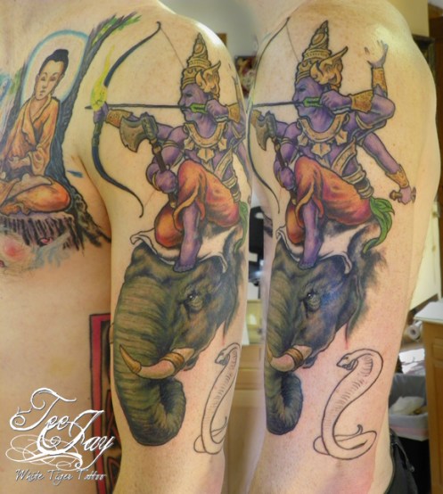 Tags: Buddah tattoo, devil cherubs tattoo, Lotus & Bamboo tattoo, lotus tattoo, Mara tattoo