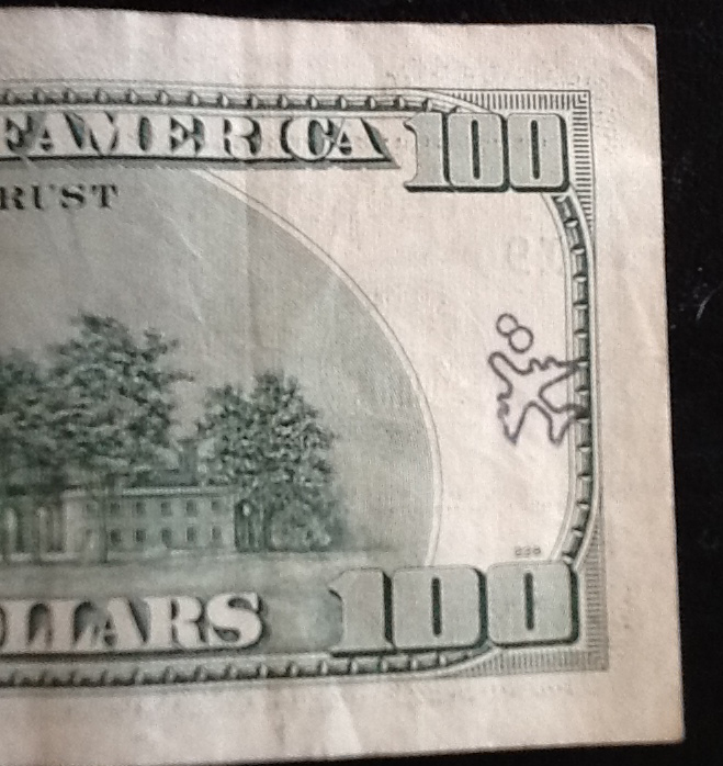 I just noticed a stamp of initials on the back of a hundred dollar bill! I don’t understand what it means. If you could help please email me. I have pictures.