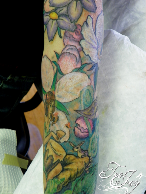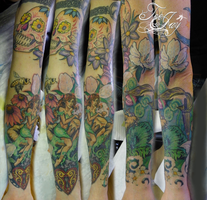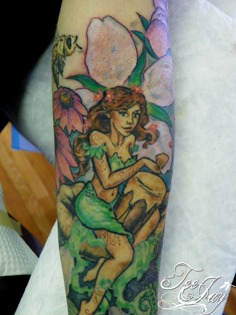 Tags: feminine, feminine tattoo, flowers, nymph tattoo, tattoo sleeve, woodland nymph