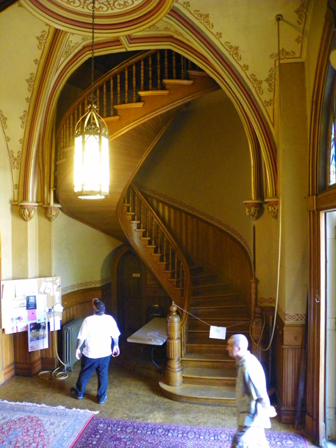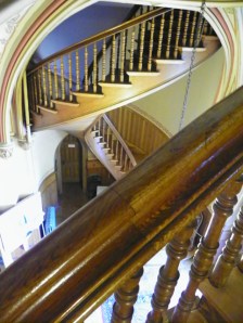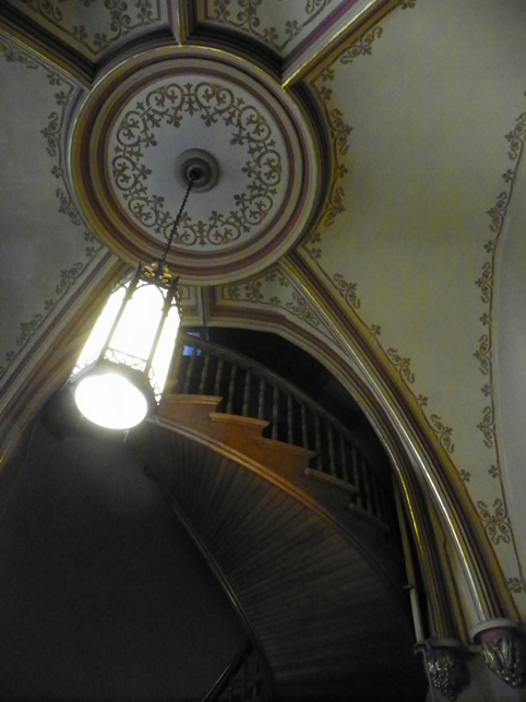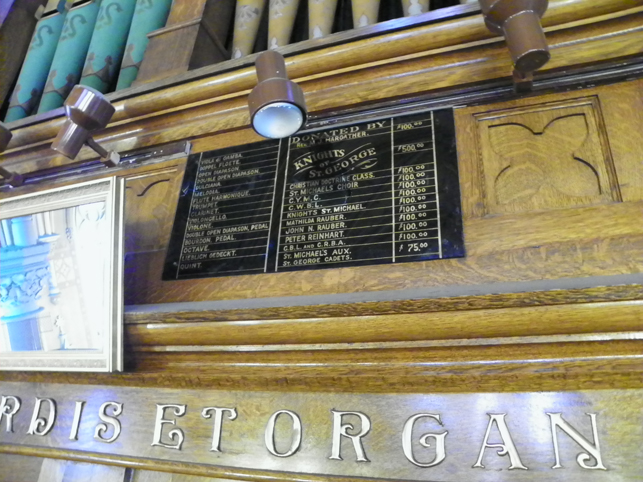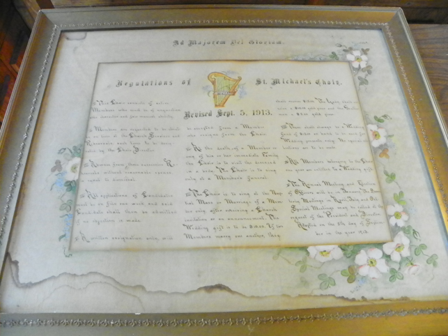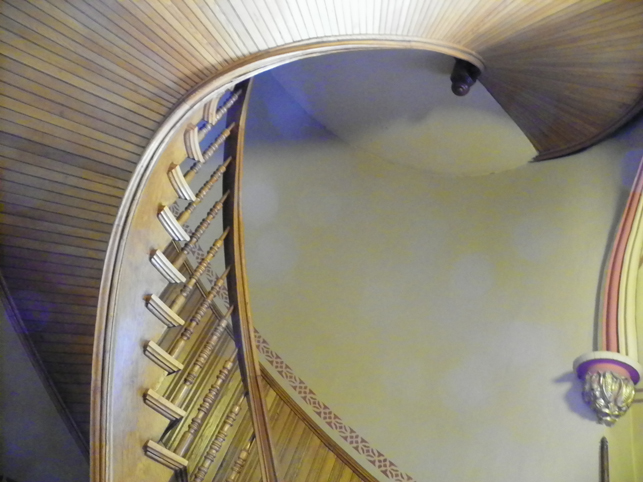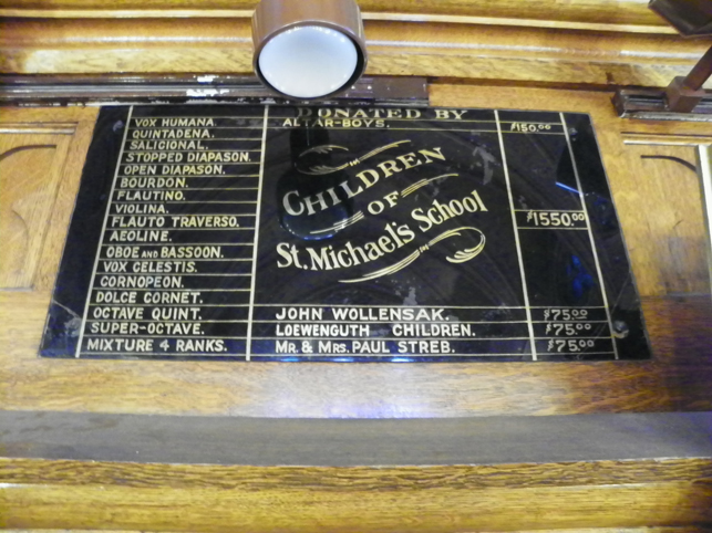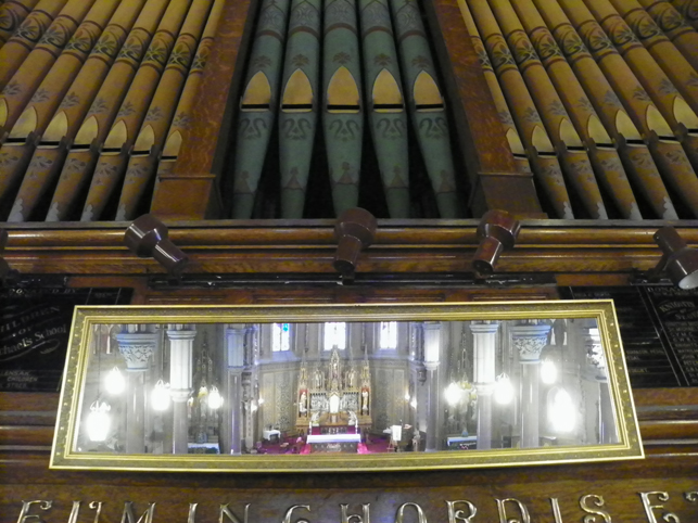 Tom explained that these were very unique spiral staircases because of the lack of separate supports. Apparently architecture students will come and study these periodically to understand how they are built.    What those pipes actually look like on the back side. Less pretty to look at – but all the more pretty to listen to. You can also see the bell ropes as they make their way up to the tower.functional organ pipes   dominum   altar from loft   upper window   upper round window   decorative pipes up close   donors for organ   donors for organ   panoramic photo of interior of St Michaels church Rochester NY   view from loft on south side   window detail   to Egypt   Choir Regulations    There’s my husband Paul : ) Paul in choir loft   ceiling   view from loft   pipes again   altar reflected in organists mirror   altar from Choir loft      ceiling      Even our most knowledgable tour guide had no idea what this was about. unknown door   spiral stair rail   spiral steps   stairs   stairs   sign for St Michaels   St Michael