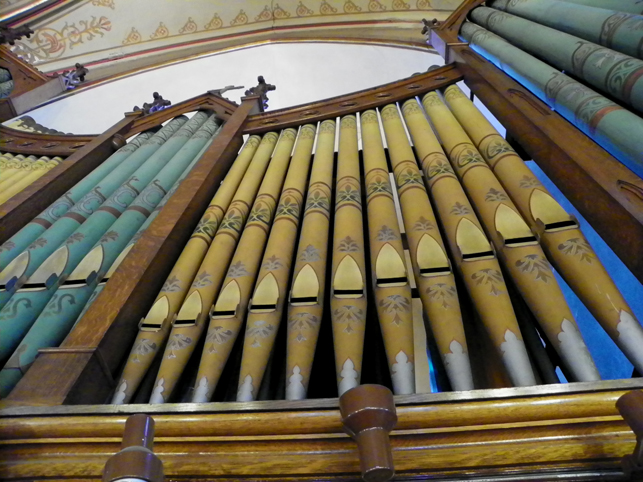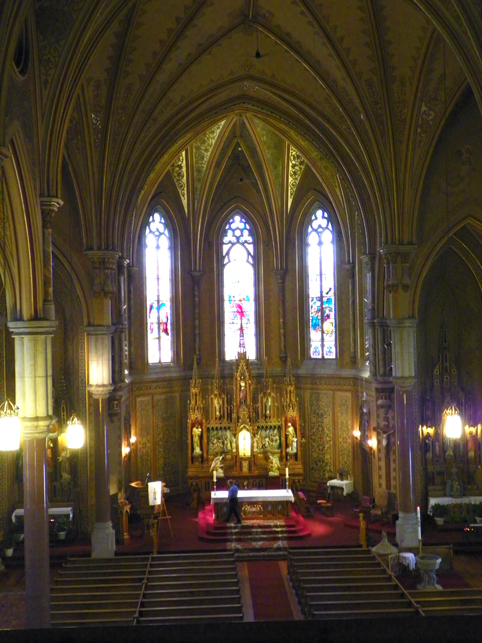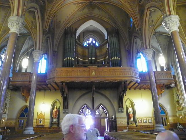 Looking west towards altar in St Michaels   Altar at St Michaels - Rochester NY   Moses window   stained glass window   Daniel in Stained Glass   Abraham and Isaac in Stained Glass   stained glass windows   Pipes from Original Organ in Choir Loft   In this photo you can tell a few things. Primarily that I was not paying any attention to the humans in the room and was just stunned by the beauty of the church. So you can see some of Tom’s Head and the very top of Chris’. Then Luke is the overexposed figure in the background further.
