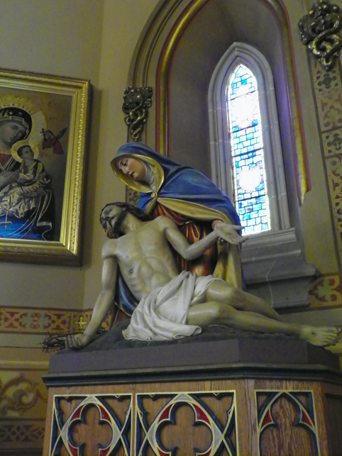 to Egypt you go   removing scales   Mary with infant Jesus      I noticed this piece of art specifically because it did not seem to quite match the other art in the church. Tom agreed. This is Saint Stanislaus. Apparently a member of the congregation thought that it was very very important that Saint Stanislaus be given a prominent place on display. I have to imagine he selected this art work out himself as well. It turns out that this individual had enough weight (or cash) that a few years down the line he was able to influence the naming of an entire church after his favorite Saint down the road a bit at Hudson and Norton. Saint Stanislaus   Jesus removed from Cross   Mary, Jesus and someone else : ) not sure who that is   Chris and Tom   base of baptismal      Someone (Chris perhaps?) asked if we could go up into the Choir Loft…. and we could! How cool is that! I would have never even thought to ask… I was already feeling so honored  and fortunate that we had been able to wander all over the sanctuary taking photos.