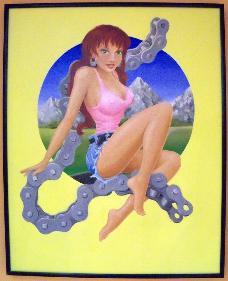 I was part way through the painting and pretty pleased with how it was going when Chris Dingwell got ahold of me. He was having a motorcycle themed show at Sanctuary and wanted to know if I had any motorcycle themed art that I could submit for it. Well, I have a biker pin-up that I am working on… would that work? Of course! Sweet, I will send her off in plenty of time to be there for the show.