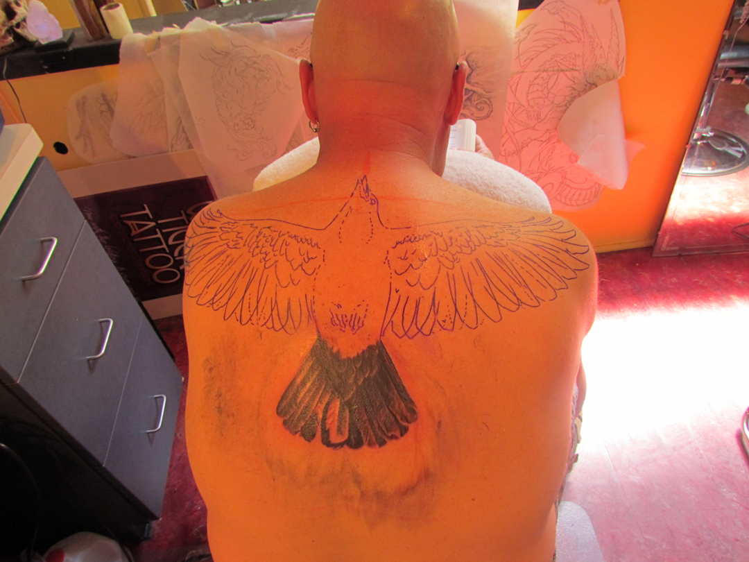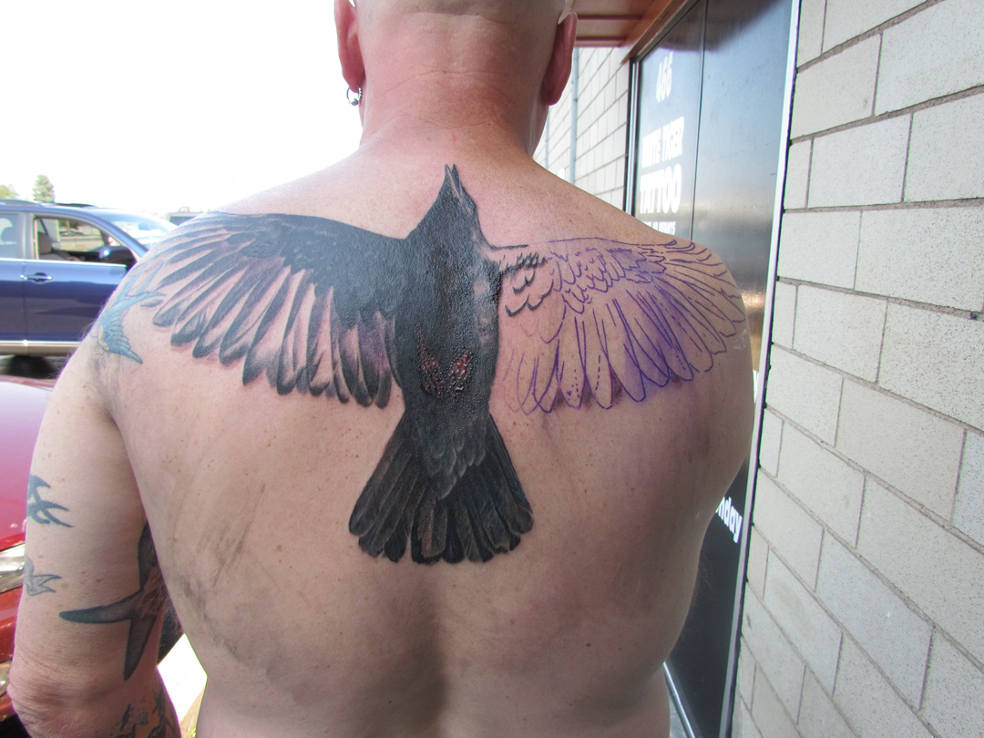 Kelly tattoo rework "before"   back rework tattoo drawing begins                  Kelly TeeJay & Mariah Rose               TeeJay tattooing Kelly                                 beginning of crow tattoo         crow tattoo tail detail   crow tattoo wing detail   smoke break - crow tattoo   crow tattoo in progress         TeeJay tattooing Rick      crow tattoo in progress            crow tattoo in progress         Joe Caiazza   Adam Francey   Joe Caiazza tattooing   top of Adam Francey's head   Rick's crow tattoo in progress   crow tattoo in progress   Kevin Farrand   Kevin Farrand   Adam Francey & Nadia Adams   Adam Francey & Nadia Adams   Kevin Farrand   Joe Caiazza tattooing   crow tattoo   crow tattoo   crow tattoo - finished (smoke break before photos and bandaging)   crow tattoo weepy   crow tattoo tail detail   crow tattoo wing detail   crow tattoo wing detail bloody   Adam Francey   Joe Caiazza   Adam Francey    Rick in White Tiger Tattoo      Joe Caiazza Rick Rosine and TeeJay   finished crow tattoo   crow tattoo head detail   Rick's Crow tattoo finished