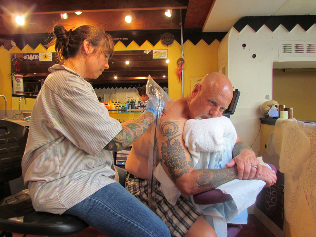 Both of them did a great job of photographing each other’s tattoos in progress and they were nice enough to share those photos with me.