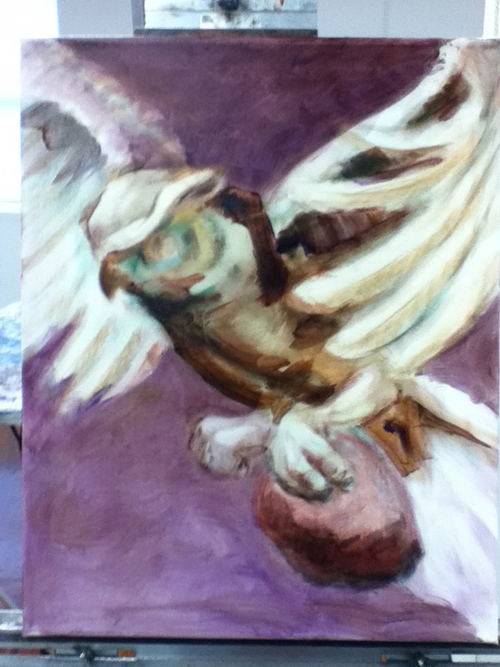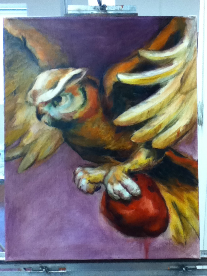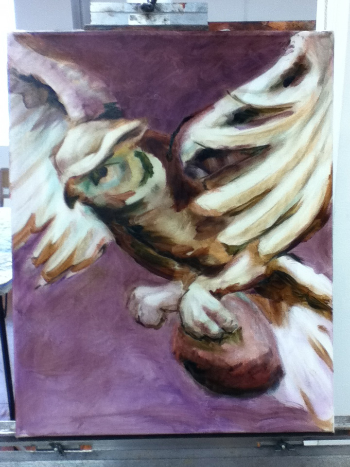 That’s as far as I made it today. Steve asked me to leave the Owl painting there with him so that he could study it a little more. The next couple of weeks look like they are going to be pretty busy so I don’t know if I will have time to paint anyhow. If I do, I still have the bird and the cat that I am working on with me.