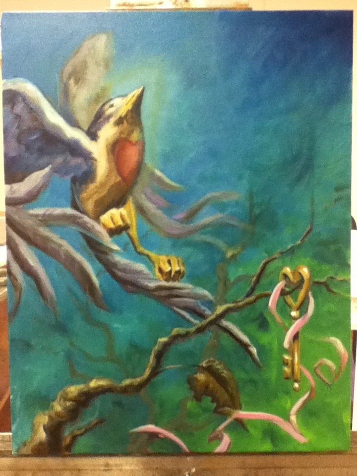 The bird painting made it to pretty much finished. Going to stare at it for a bit and decide if it needs anything else.