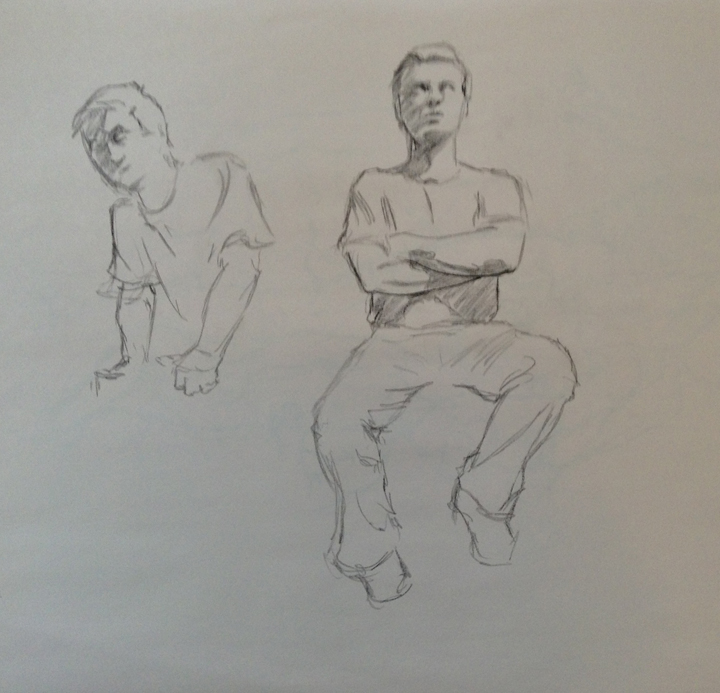 Then that night back to Figure Drawing Class. I arrived late, but apparently before the model did. One of the guys from the class had stepped up and was posing for us (clothed). I imagine it is far more difficult than it looks to hold those poses as well and as long as they do.