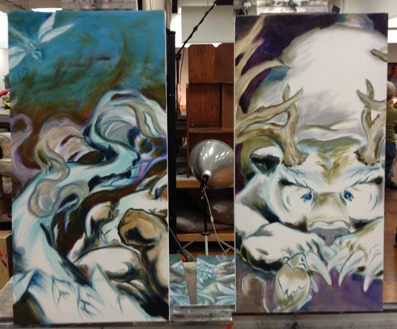 I got back in town on Saturday night so I had plenty of time to rest up and head back to painting class Monday morning. I started two new pieces.