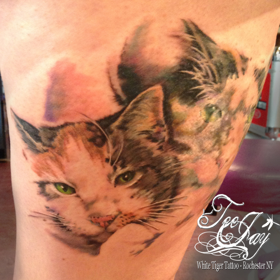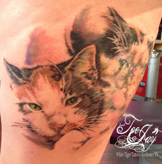 She wanted to make it into a tattoo and I was excited for the challenge. The only thing I wanted to change was how far the kitties were from one another – by bringing them in closer I felt it would work a little bit better. I did do a rough sketch of what I had in mind to show Jenn.