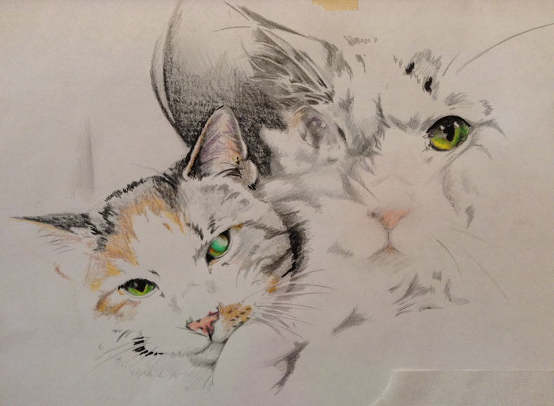 I did want to make the one eye reflective (like the flash had bounced off of it), but Jenn and I agreed that it took too much away from the character of the cat.