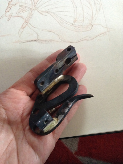 Brought Frank’s arm project down on to his hand.