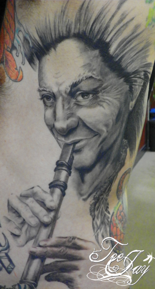Got some (mostly) healed shots of this kokopelli tattoo.