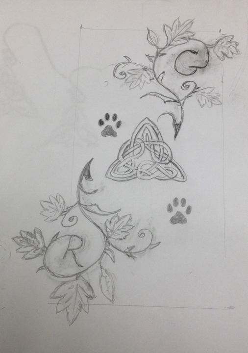 once that was sorted out it was time to figure out how to add the other elements. I had thought that maybe we could incorporate the initials on something