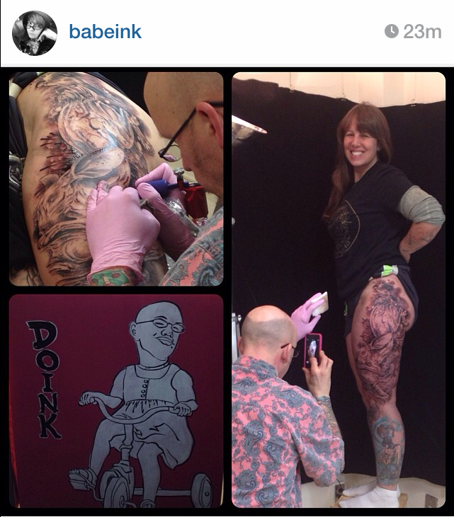 I was honored to get tattooed recently by the Amazing Chris Dingwell. I have known Chris for more years than I was able to figure out and while Paul has gotten extensive work from him, I thus far had not. As if that wasn’t cool enough all on it’s own – the Lovely and Talented Holly Azzara came and hung out with us while I was getting tattooed. Which helped lots even if it may have been boring for Holly since I don’t cope terribly well with getting tattooed. I totally forgot to take any photos of my own so here are the ones that I pulled from each of their instagrams.