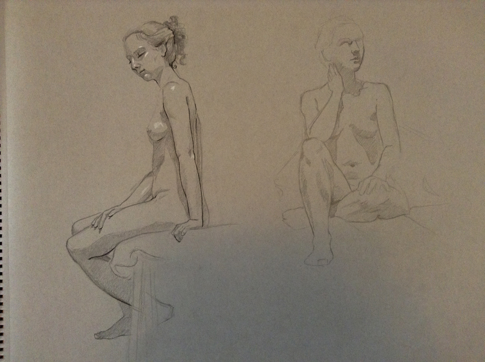 I had decided a while back that I wanted to try using some other paper for the figure drawing instead of always working on newsprint. I mostly saved the “good” paper for the longer poses and spent most of the time that I was using it trying to figure out what I liked using on it best. Some of the sessions were more successful than others – but overall I think it was more than worth it.