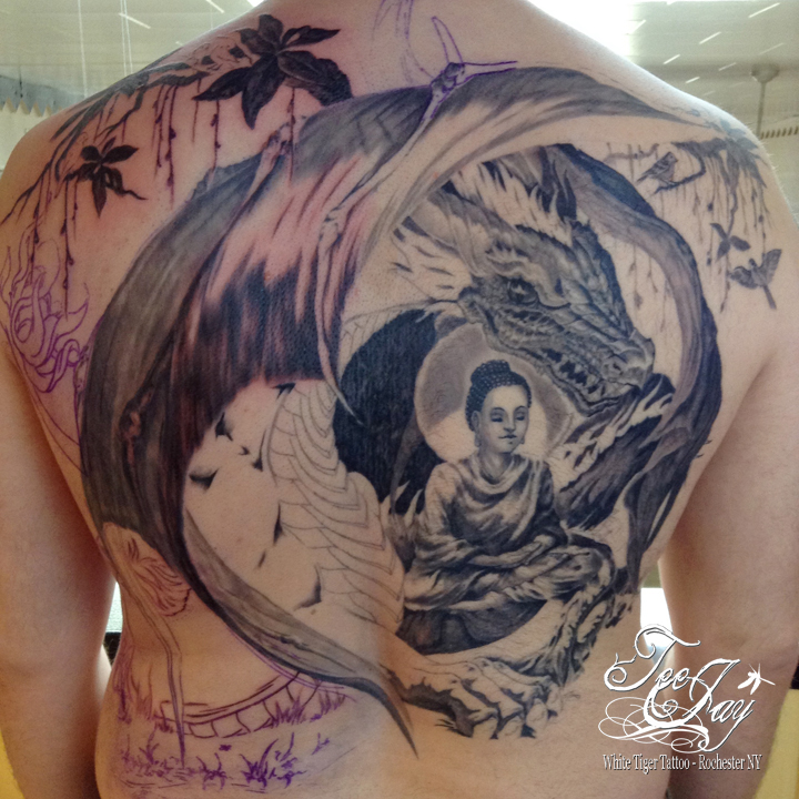 Took healed photos of Bob’s Cthulhu tattoo and some stage photos of the piece we are working on now…