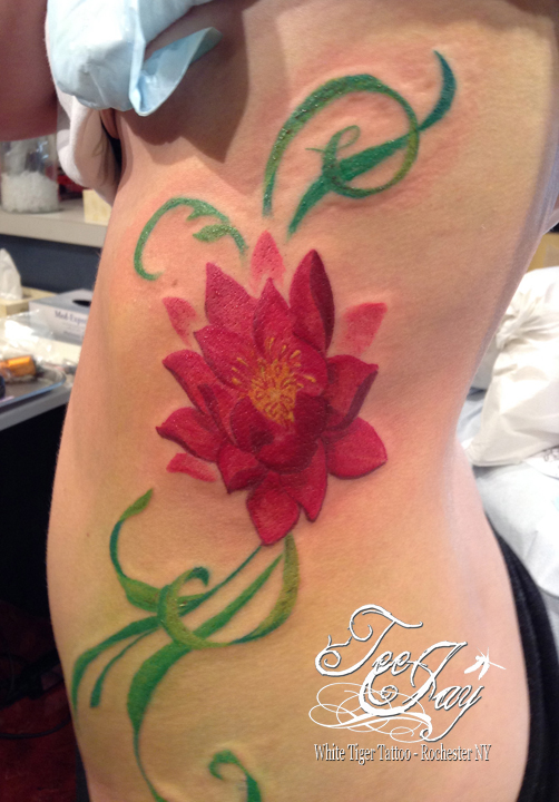 Made an outline free lotus piece for Chelsea who thinks she is wiggly…. she has no idea how wiggly most people are when they are getting their ribs tattooed.
