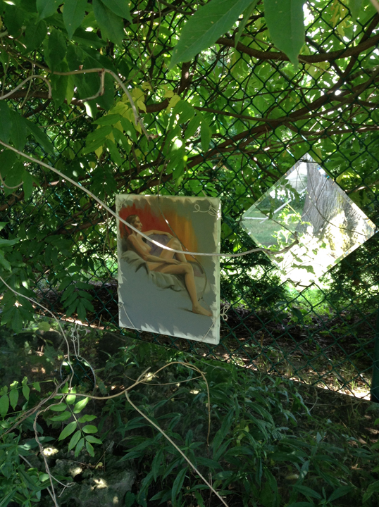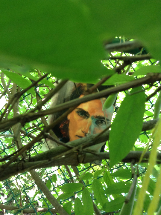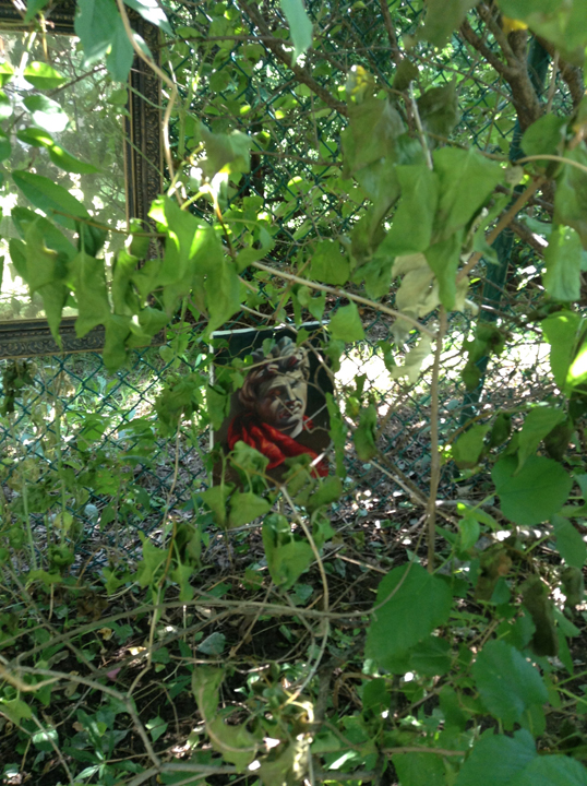 I don’t know if I posted it on here or on one of my other media outlets – but I had taken a bunch of paintings that I didn’t know what to do with and wired them to the fence in my back yard. People have been asking me how they are holding up. So here are photos of where they are now. I think winter will be where the real damage occurs.