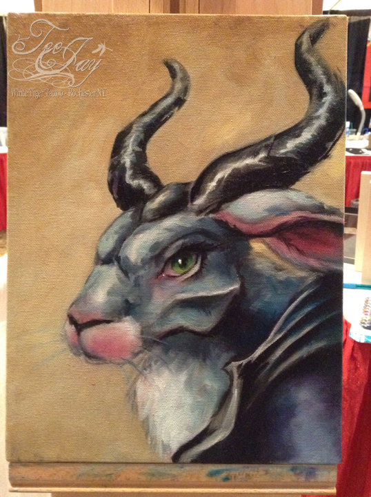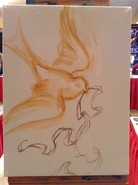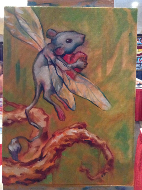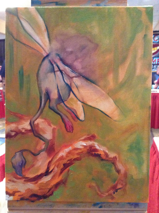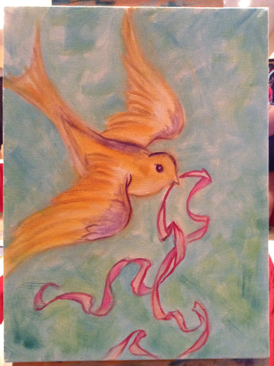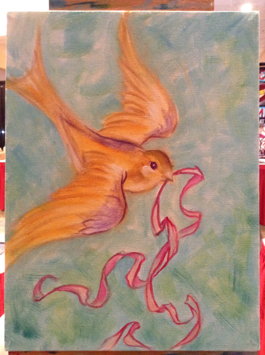 Back to painting in the booth. This one is based off of a tattoo design that I may never get to make as the young lady who requested it has found herself setting out on a big exploring journey that may not bring her back to Rochester… and if it does, she may be a changed enough person that a new design would be in order. We shall see. In the meantime I will take good care of her little bird. I’m not sure about this painted version however. I was really struggling with it and it may need to be redesigned and/or scrapped. Again, time will tell.